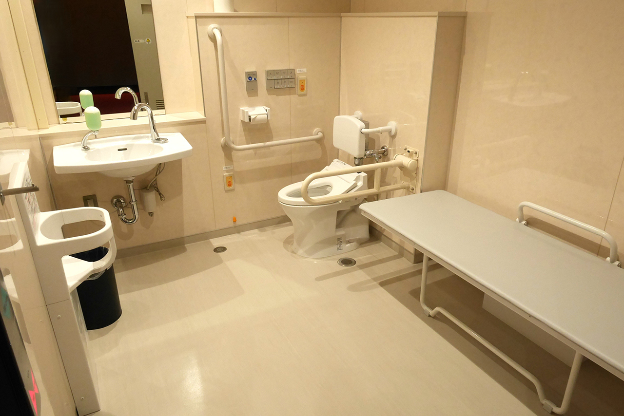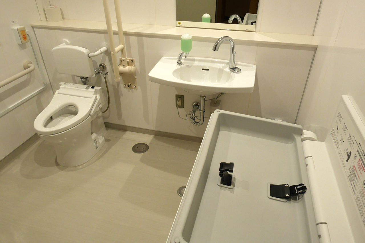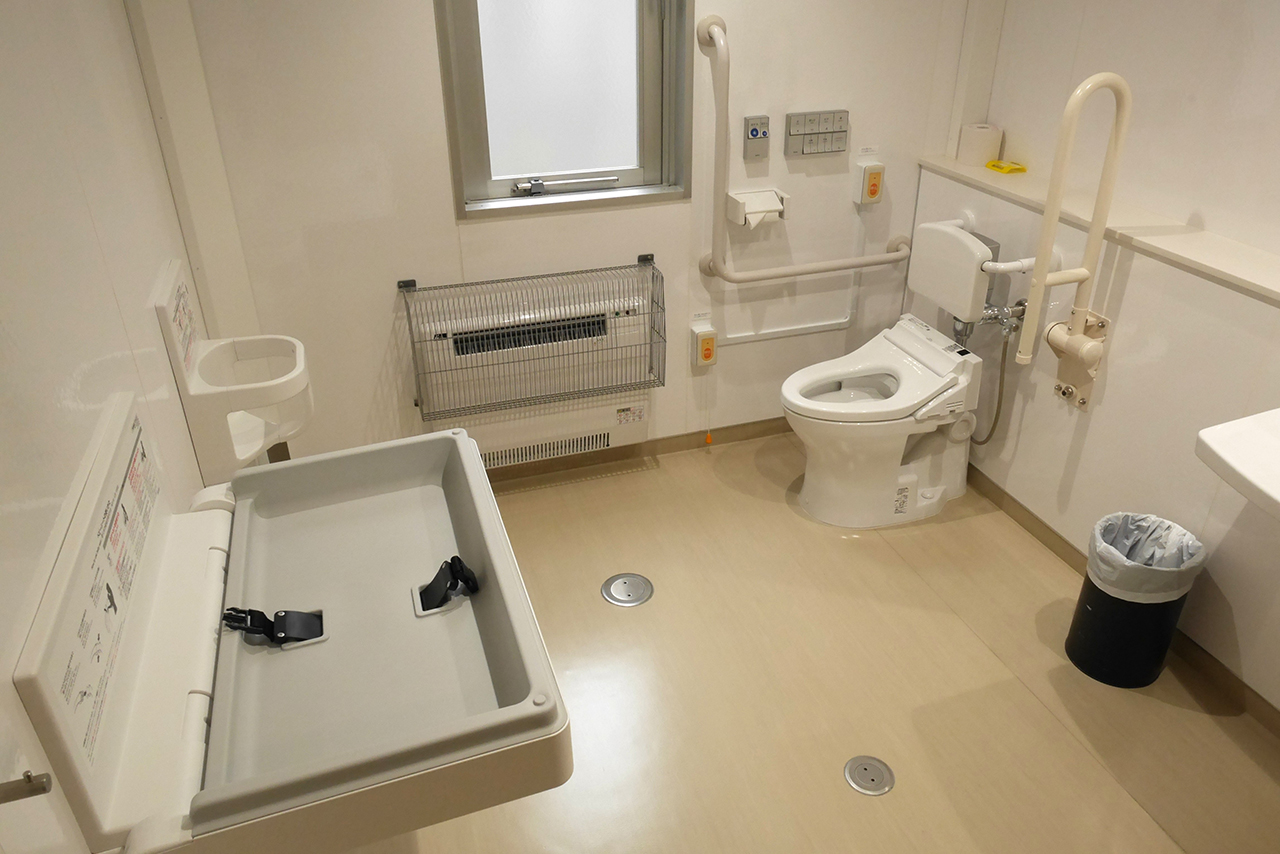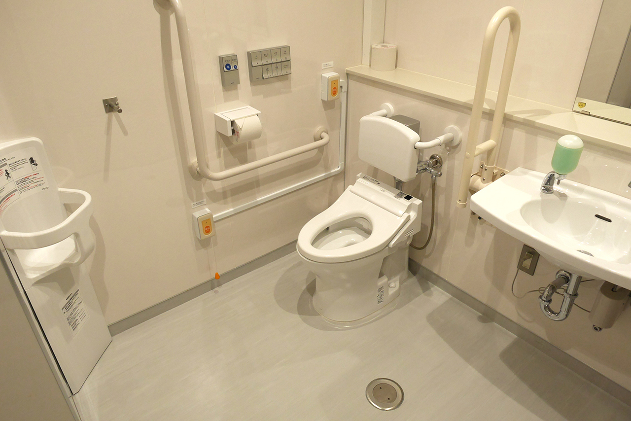 多目的トイレは、各階にあります。場所によって設備が異なります。