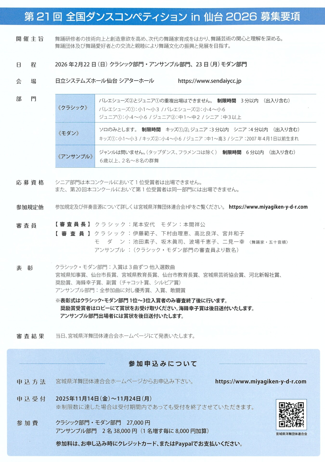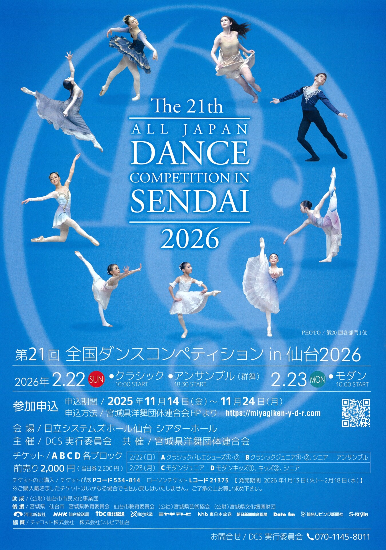 2026年2月22日(日曜日) <クラシック部門> 開演 10時00分 <アンサンブル(群舞)部門> 開演 18時30分 2月23日(月曜日・祝日) <モダン部門> 開演 10時00分