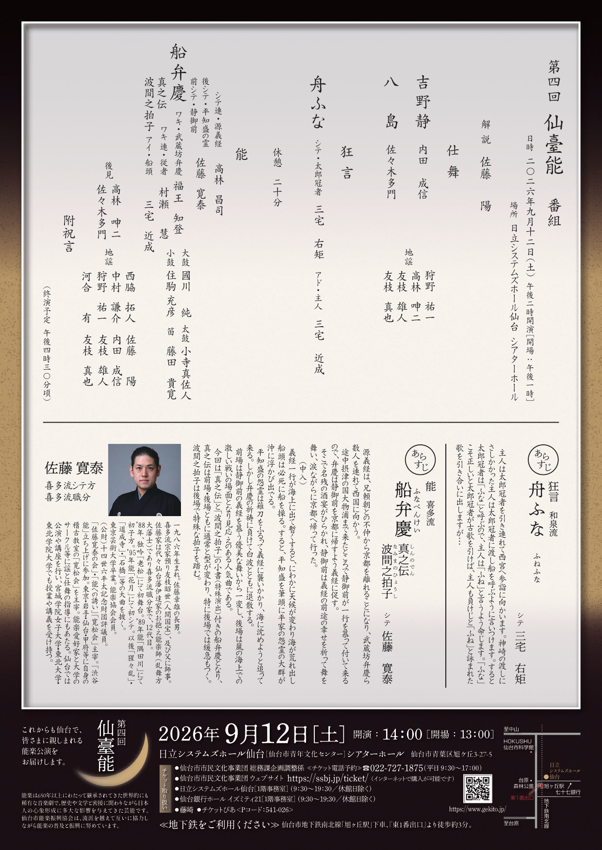 | 主催 | 仙台市能楽振興協会、仙台市、公益財団法人仙台市市民文化事業団 |